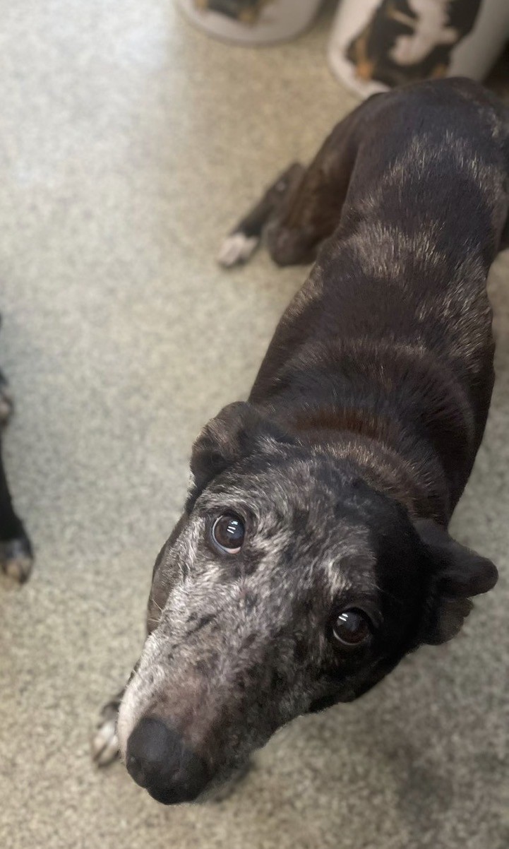 We do not have an age for Barbara but our vets estimate she is somewhere in the region of 10 years. She has some arthritic change in her hips which we now have her on daily pain relief for in an effort to make her more comfortable.