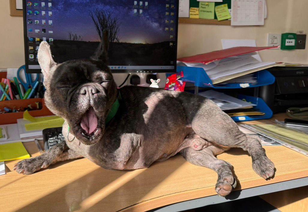 Jeffrey has spent the last weeks hanging out in our office, we have worked out he is not a fan of printers or paper shredders and has given himself the role of office security, he’s generally quite a noise sensitive little man.