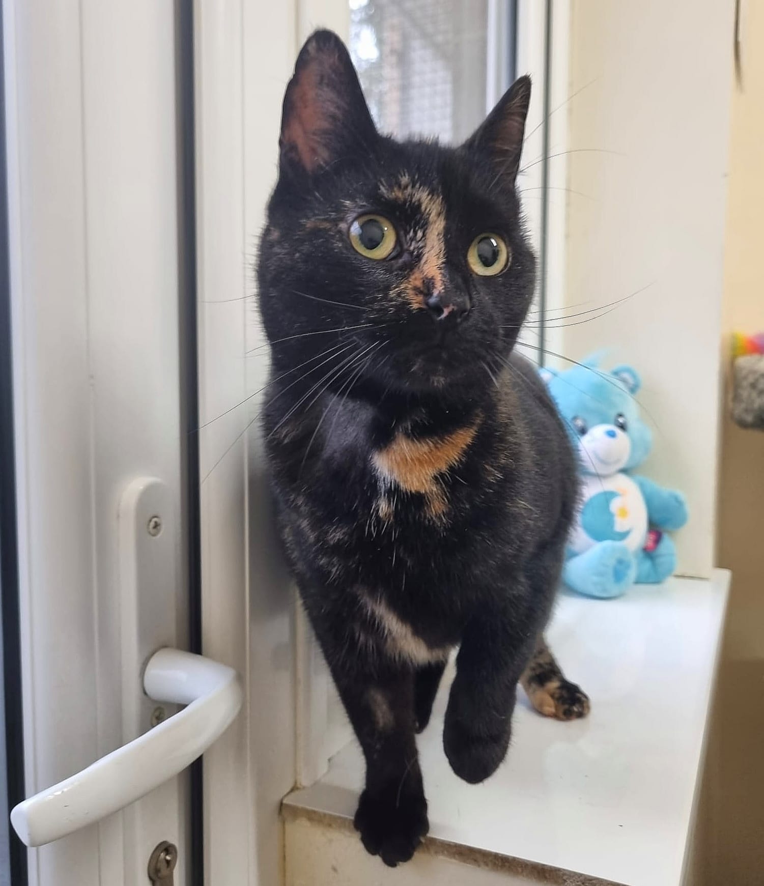 Minnie the minx is a little character. Her favourite party trick is to jump up and brush her head against your hand! She’s a vocal girl and will shout at you for attention. She loves affection and is waiting to get spoiled in her forever home! We are currently seeing how she gets along with other cats, but she would be suited to a calm household and with children who have a sensible approach towards cats.